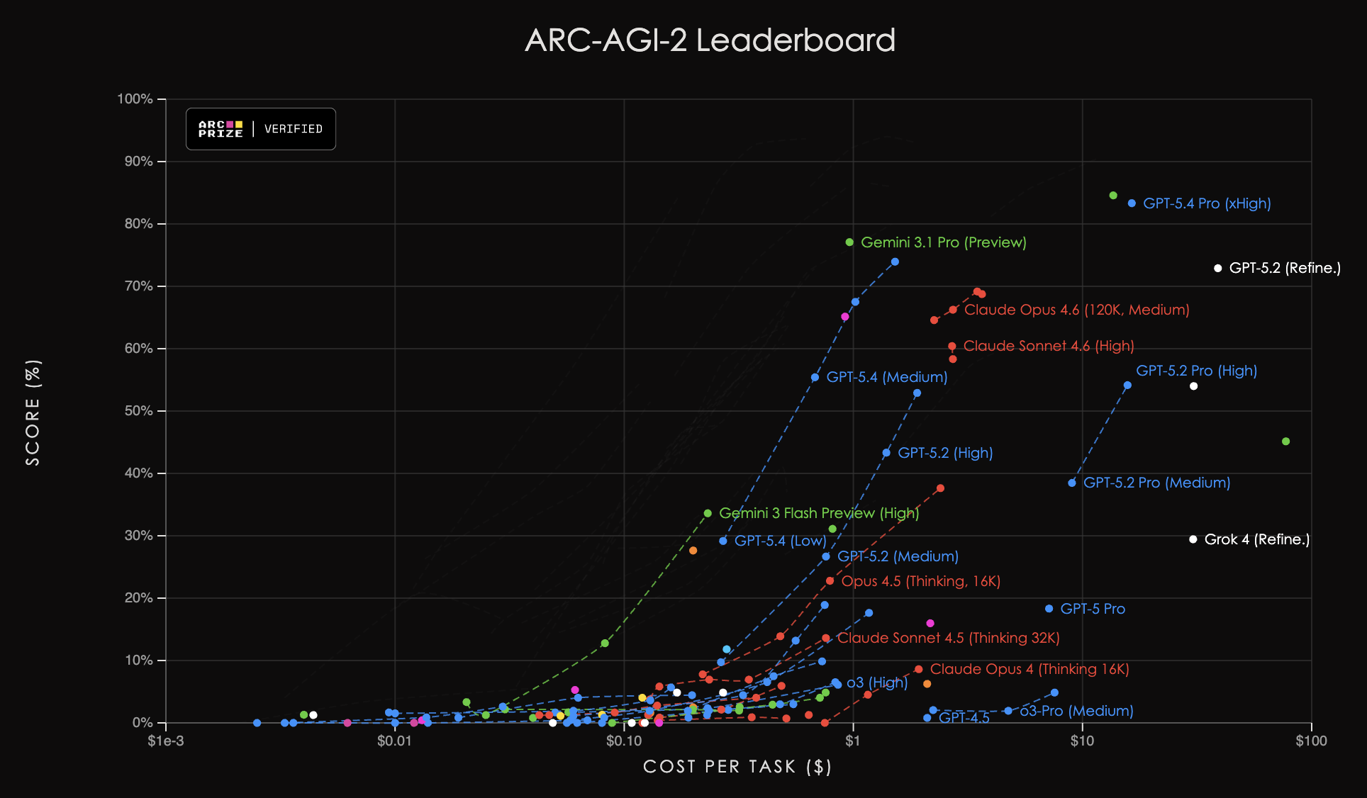 Gemini Deep Think, however, scored 84.6%, verified independently. Gemini 3.1 Pro scored 77.1%. Going from near zero to above 80% was made possible through a reinforcement learning-based reasoning approach, applied to a problem class that scaling-only approaches cannot crack.
